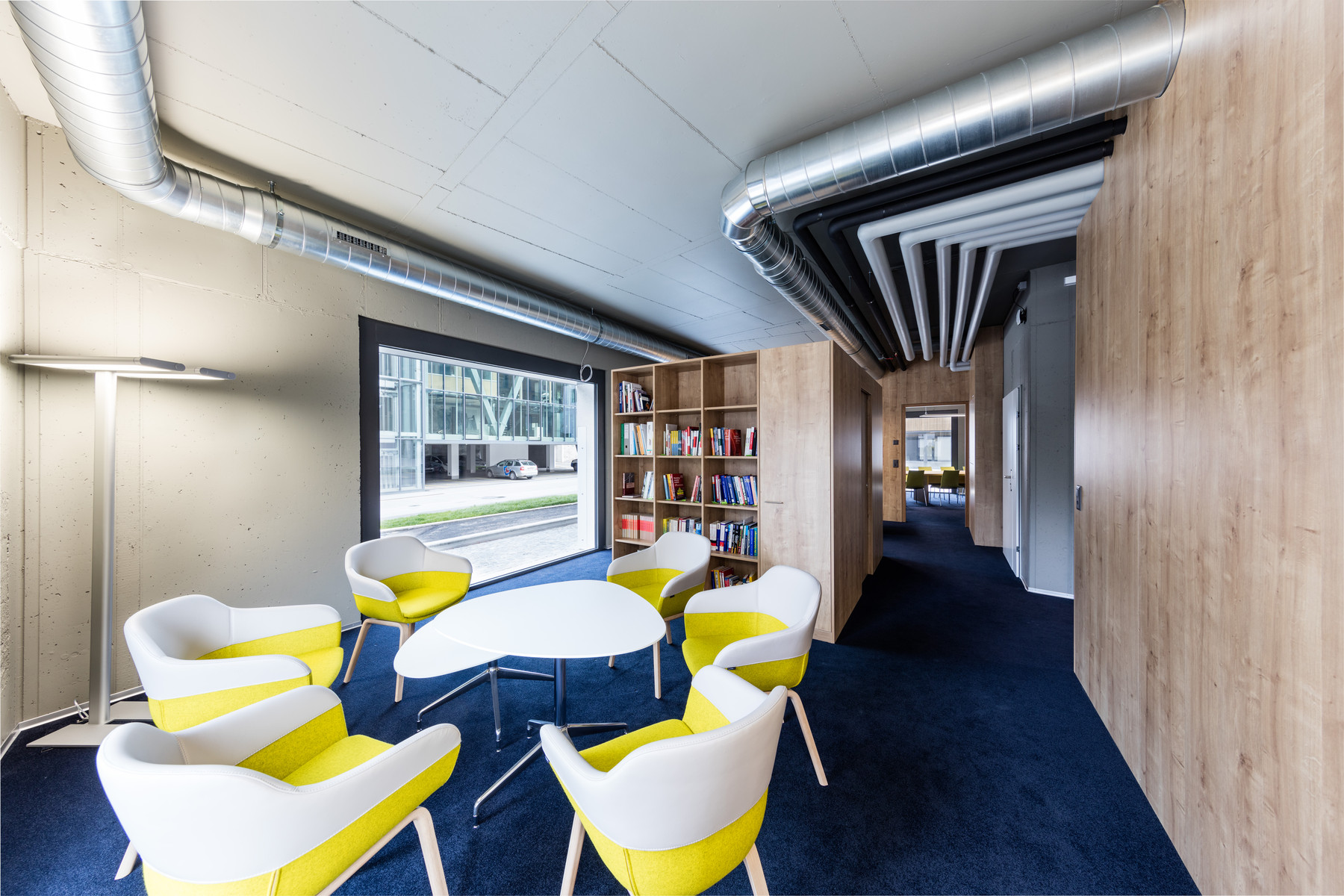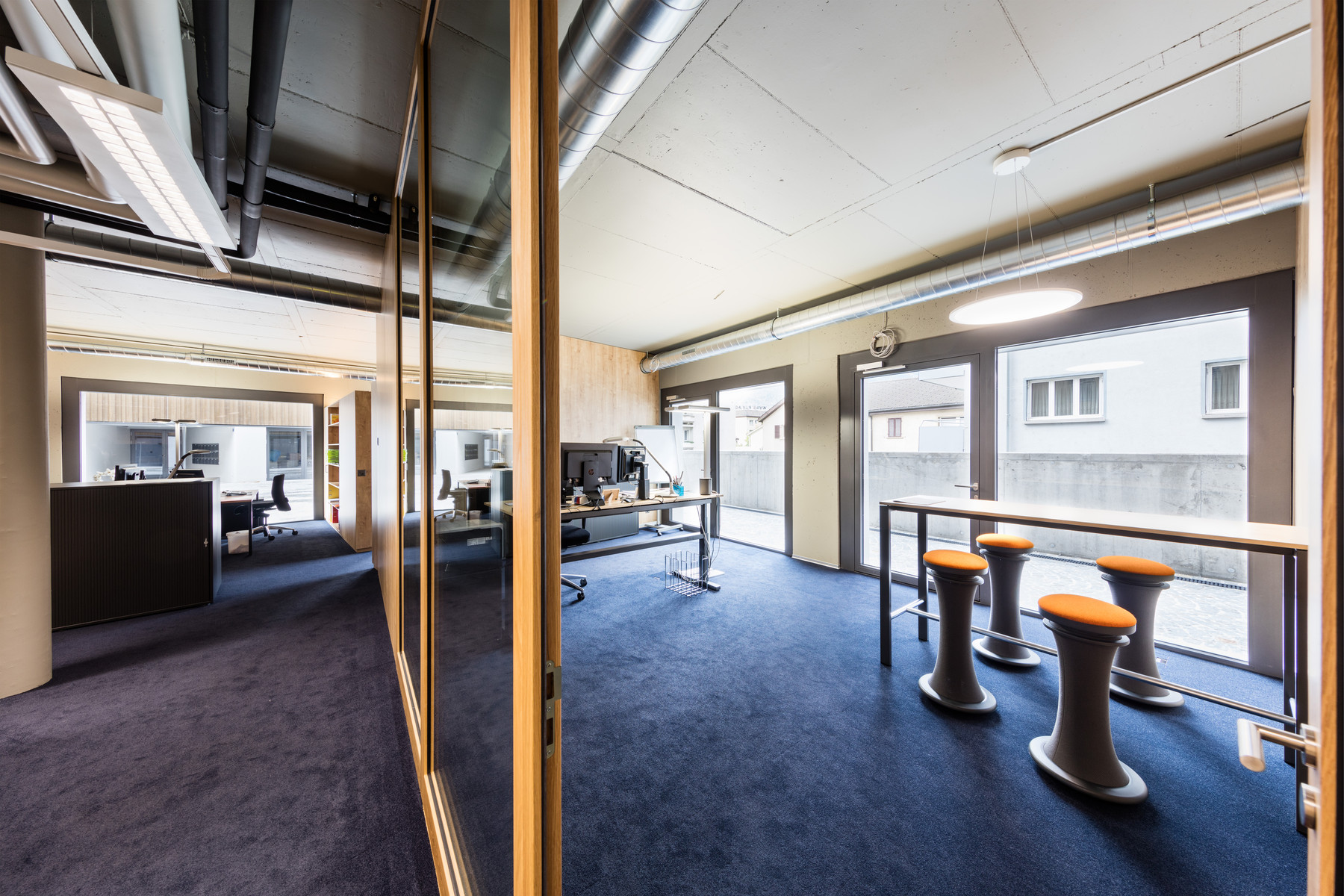 Elektromechanische Personelift, im Bürogeböide, rollstüehlgängig mitera Nutzlascht va 675 kg mit eisitigem Züegang und Teleskopporte vam 2. Unnergschoss bis ine 6. Obergschoss.